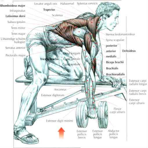 Добавлено: А вот с гантелями на плечи. тягу гантели одной рукой. ...