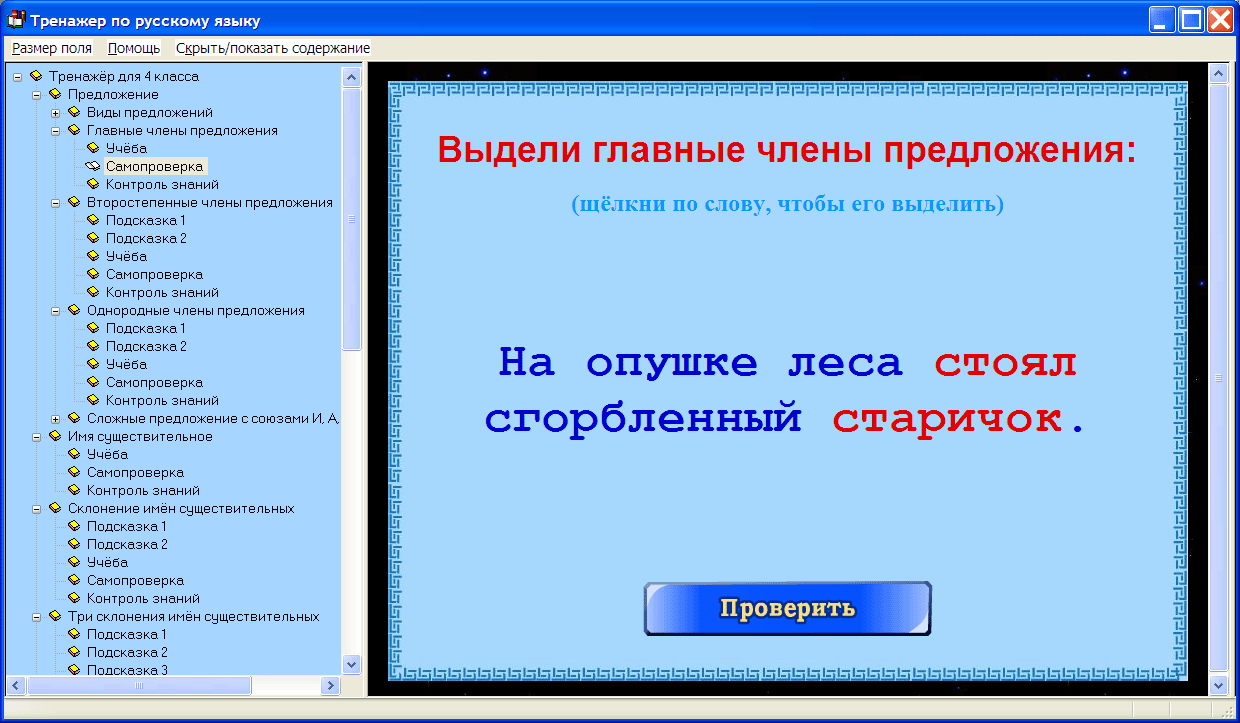 Интерактивный тренажер по русскому языку для четвёртого класса к учебнику Р.Н.Бунеева и др. // . Для школьников