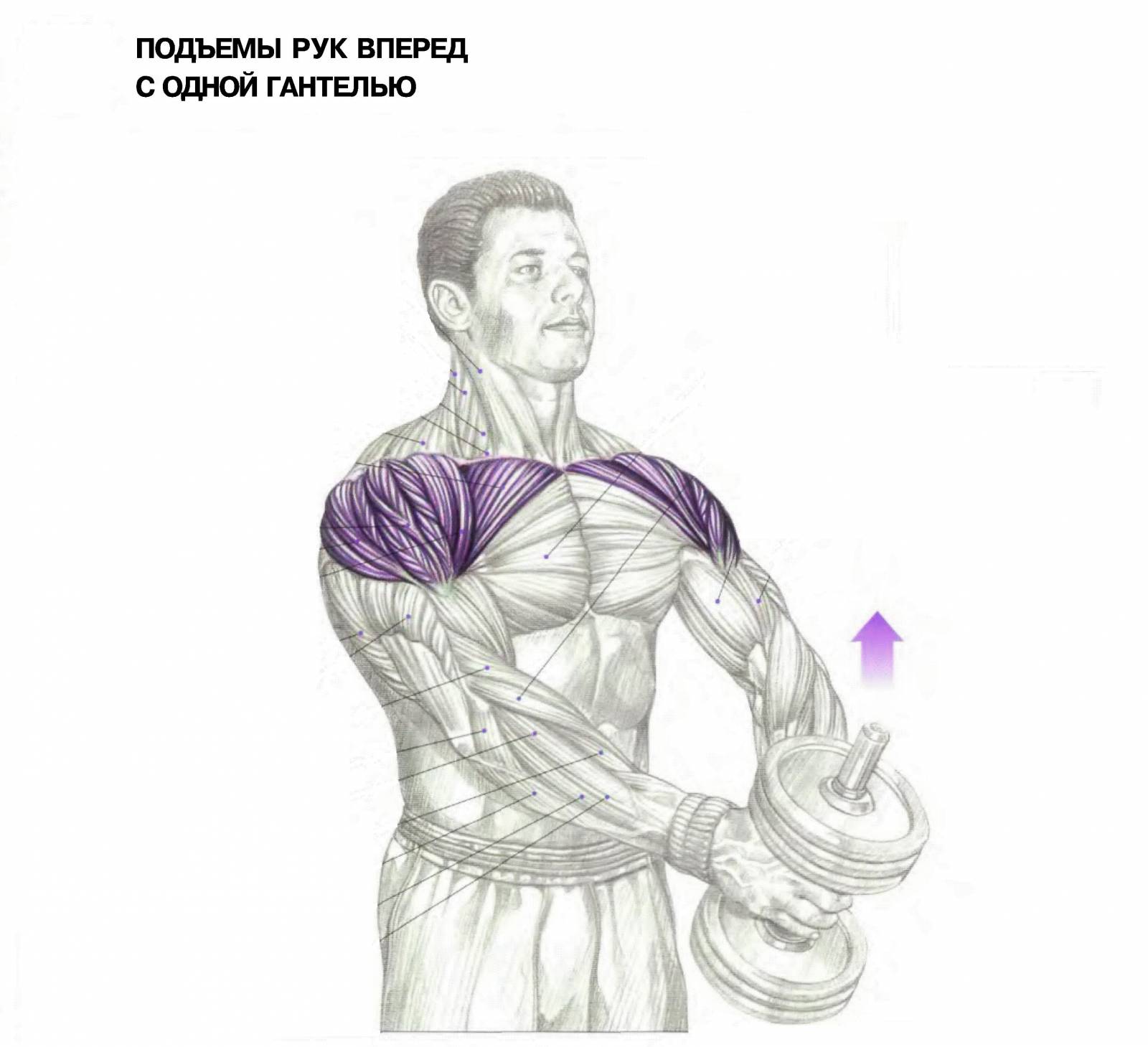 Подъём рук с одной гантелью, правильное выполнение упражнения. Стоя, спина ровная. . Б…